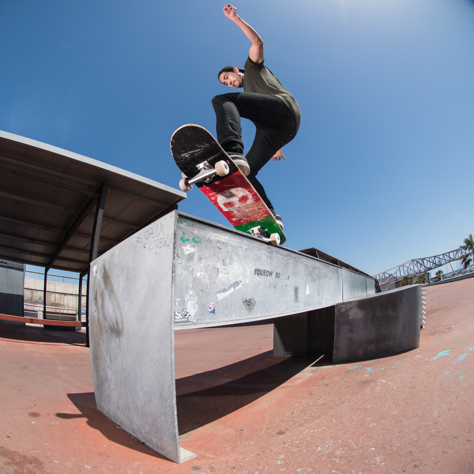 Like any true street spot, there are unforeseen difficulties with skating structures that were not initially designed for skateboarding (although I swear some of the features in Barcelona  are so perfect that hey had to have been designed with skating in mind).  The first pic on this post shows a bench constructed of two steel rails.  Although seemingly perfect for a front boardslide, the overhanging sign made it difficult to skate without hitting the front of the board on the sign.  This necessitated an adjustment to assume a position more characteristic of a blunt slide whereby the board is held at a sharp angle upwards in order to avoid hitting the sign.  It is this sort of creativity and troubleshooting that makes street skating challenging and fun.