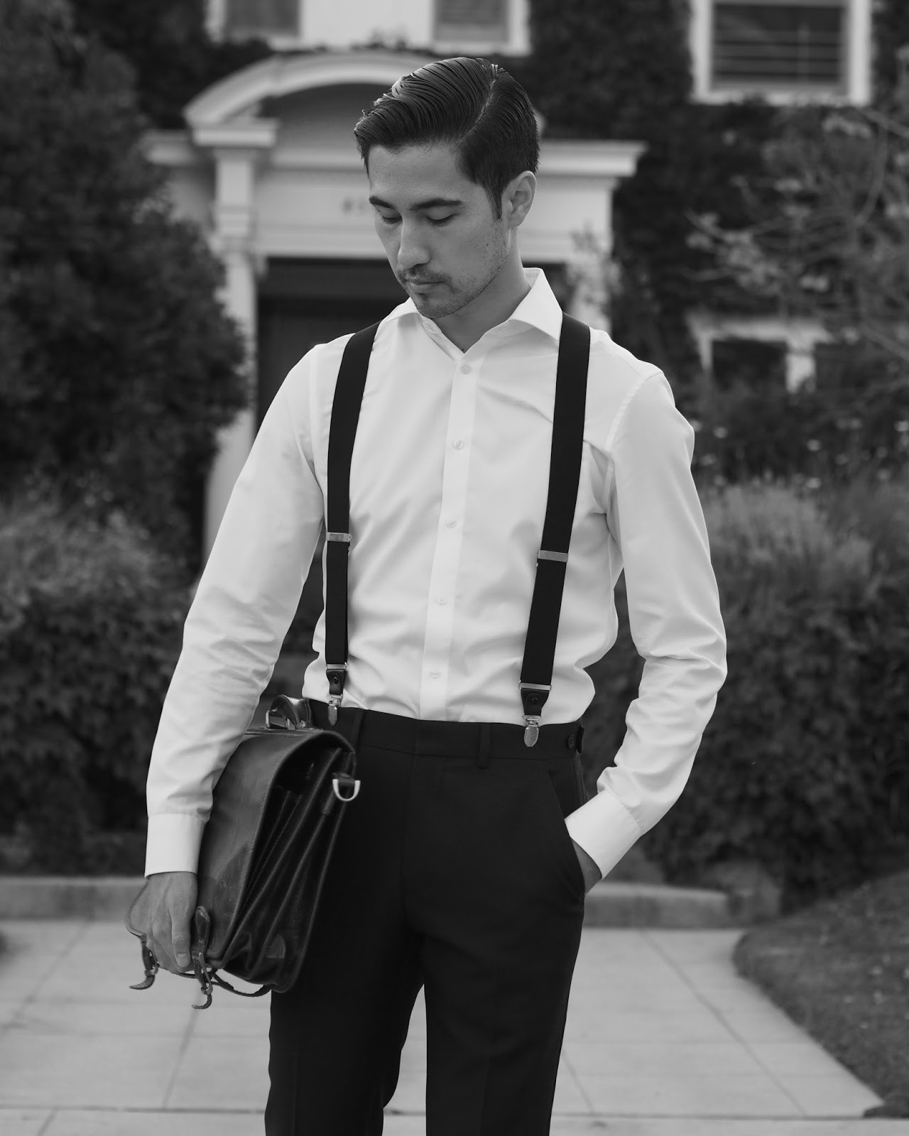 Remember Gordon Gekko in the 1987 film “Wall Street”? There was a man who could pull off big suspenders. I on the other hand am a bit foreign to the look. Nevertheless, I felt like money standing in front of a mansion belonging to a stranger I didn’t even know. I’m just glad I had the chance to snap a few pics before being shooed off the property.